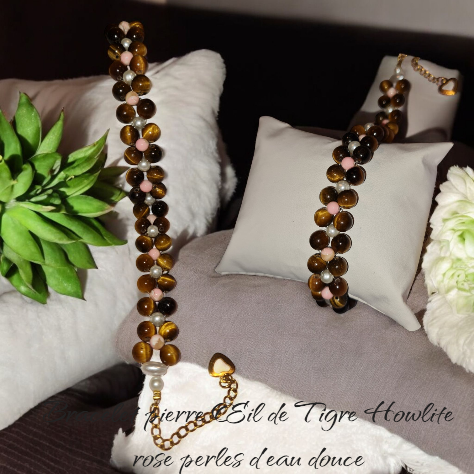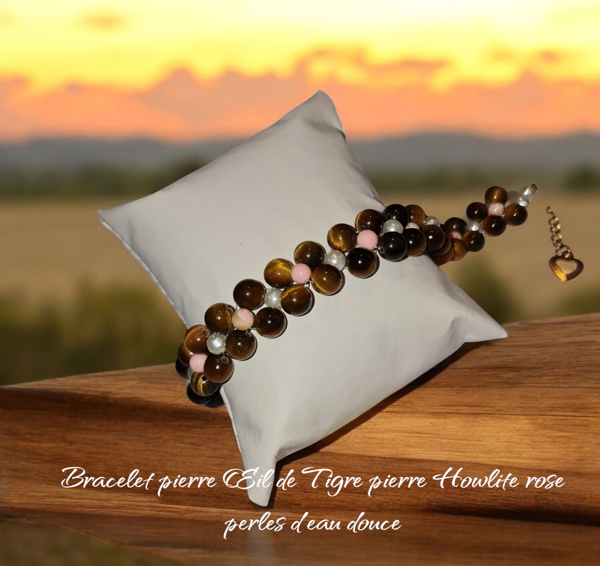 Bracelet 92 pierre Œil de Tigre pierre Howlite rose