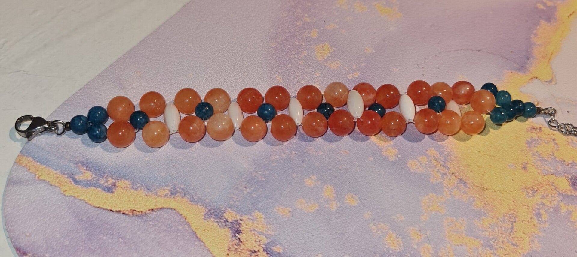 Pierre du soleil perles de nacre et Pierre de Chrysocole