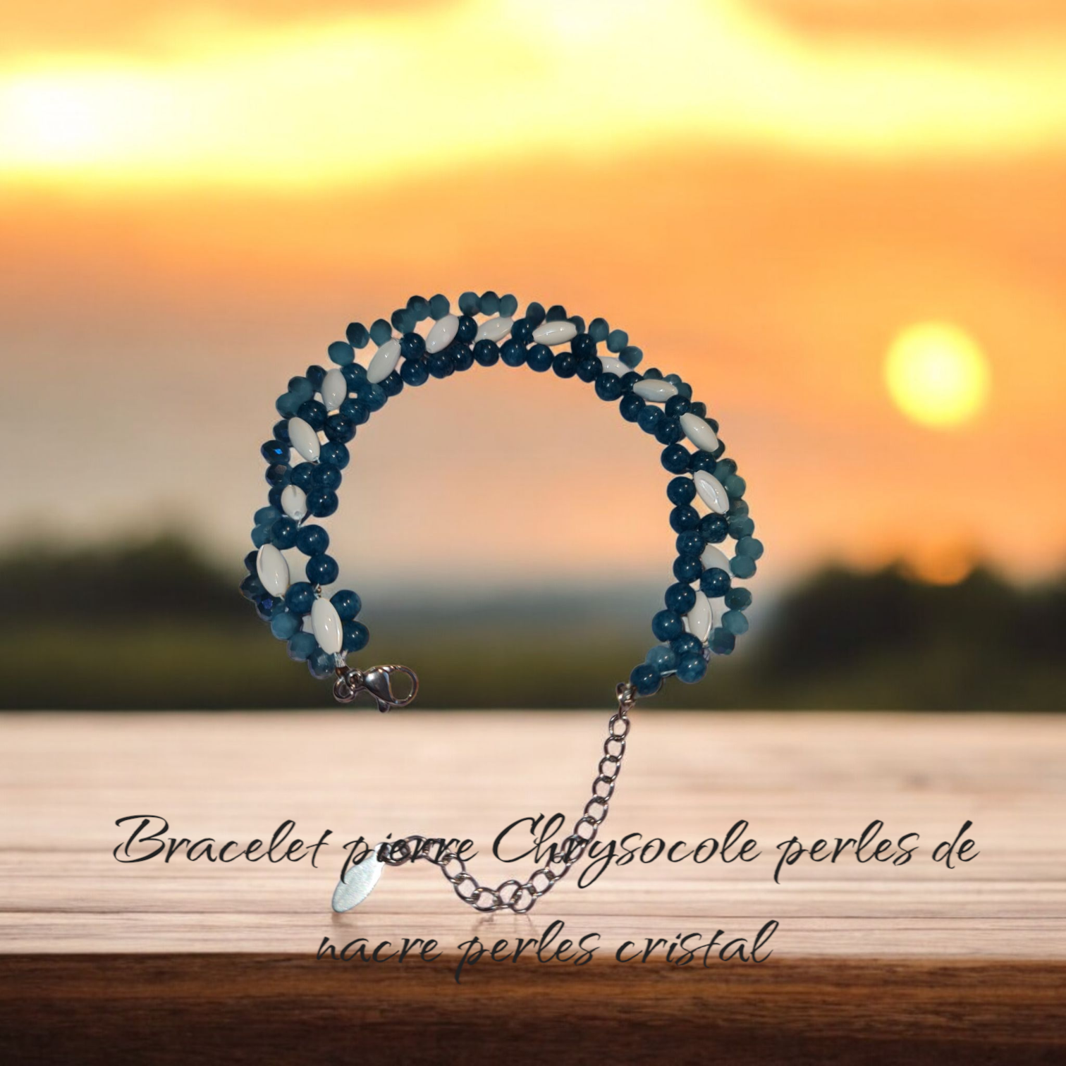 Chrysocole perles de riz nacré perles de cristal Autrichienne