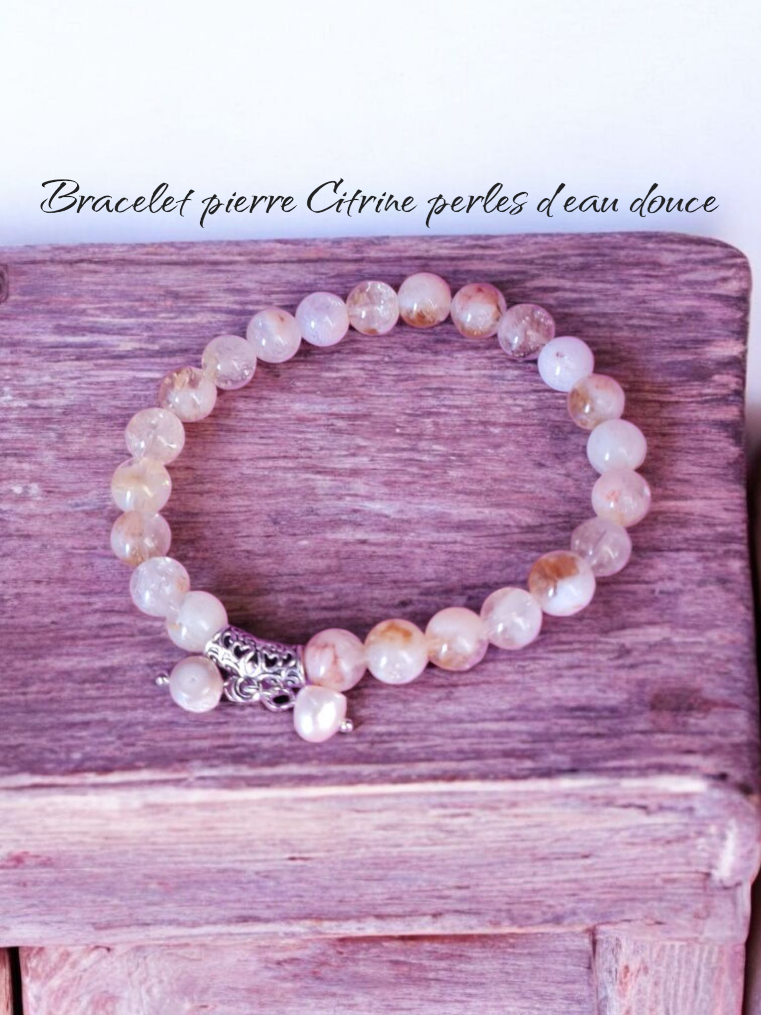 Pierre véritable Citrine 2 perles d'eau douce véritable