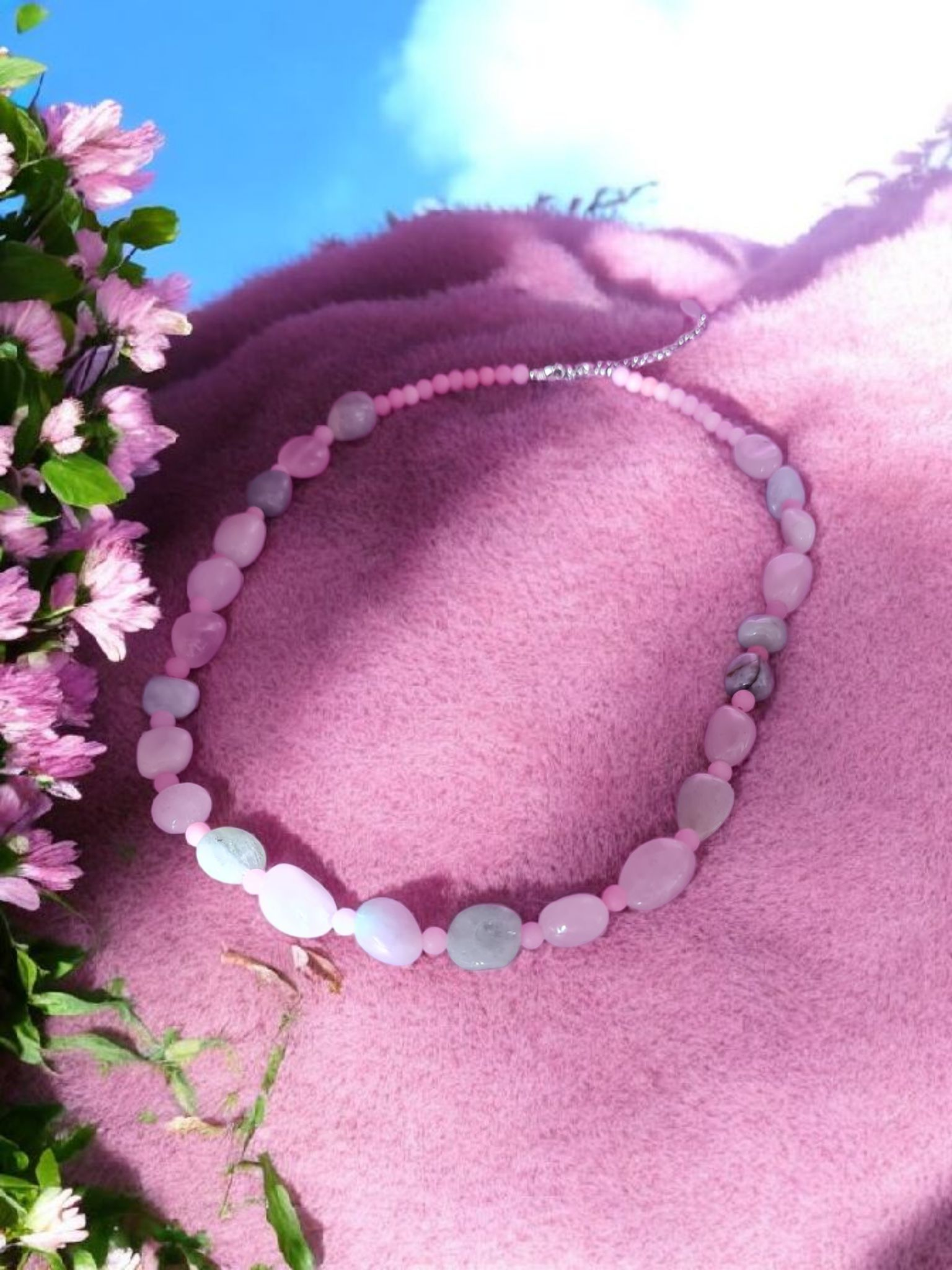 Collier 251 pierre de Morganite pierre de Quartz rose