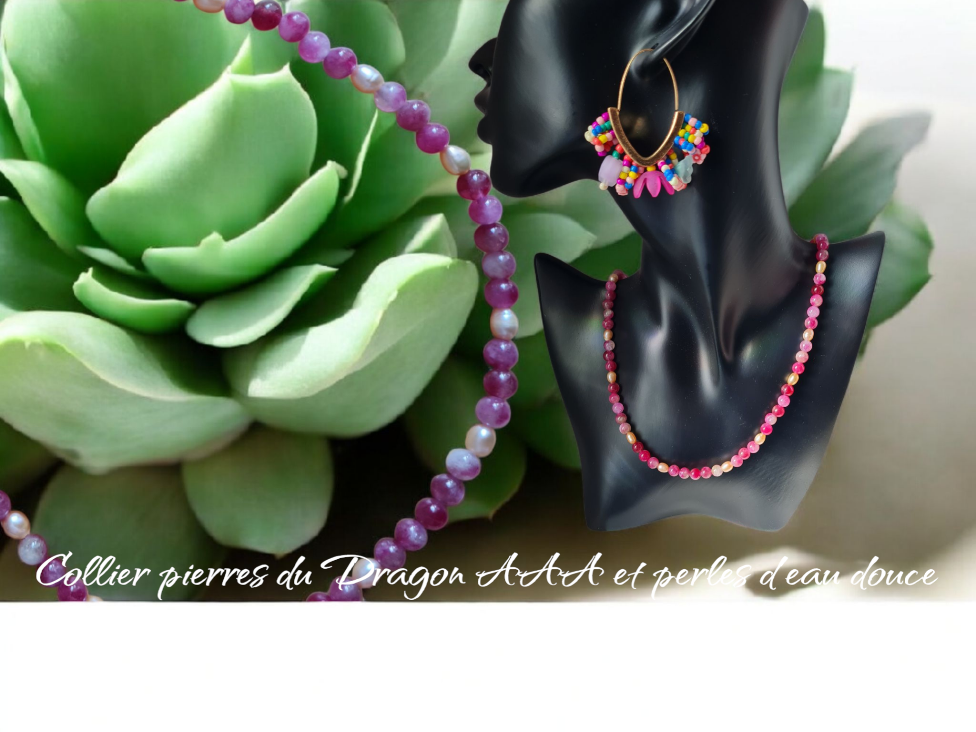 Pierre du Dragon et perles d'eau douce véritable