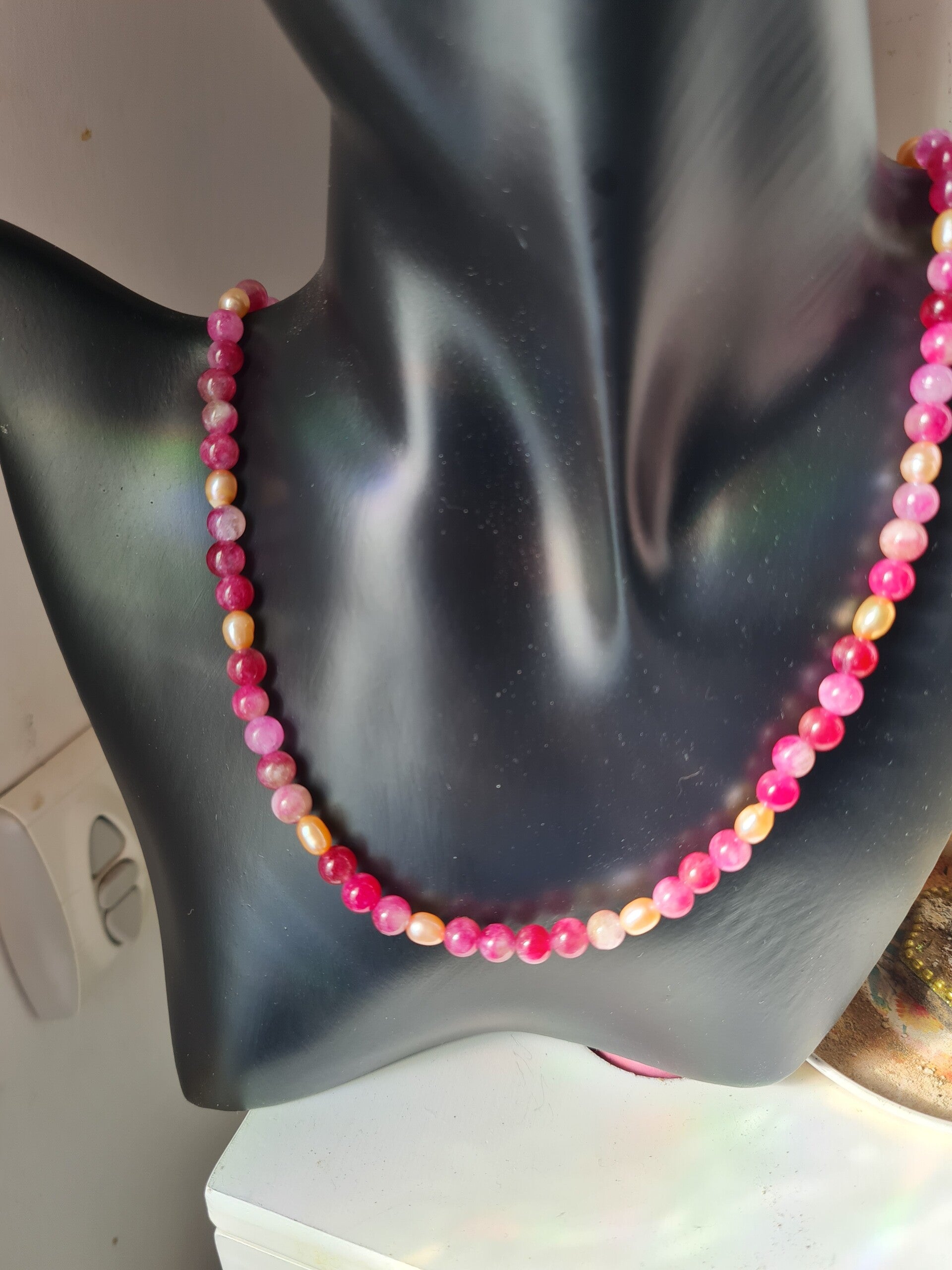 Collier 273 pierres du Dragon et perles d'eau douce