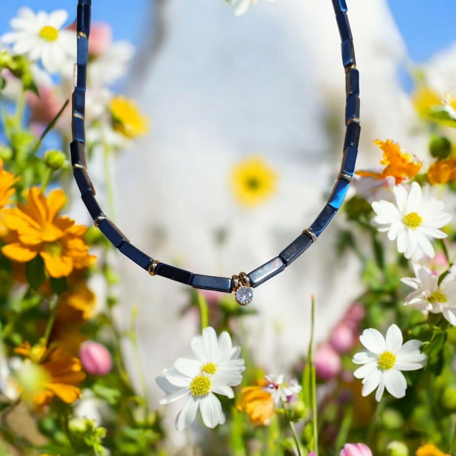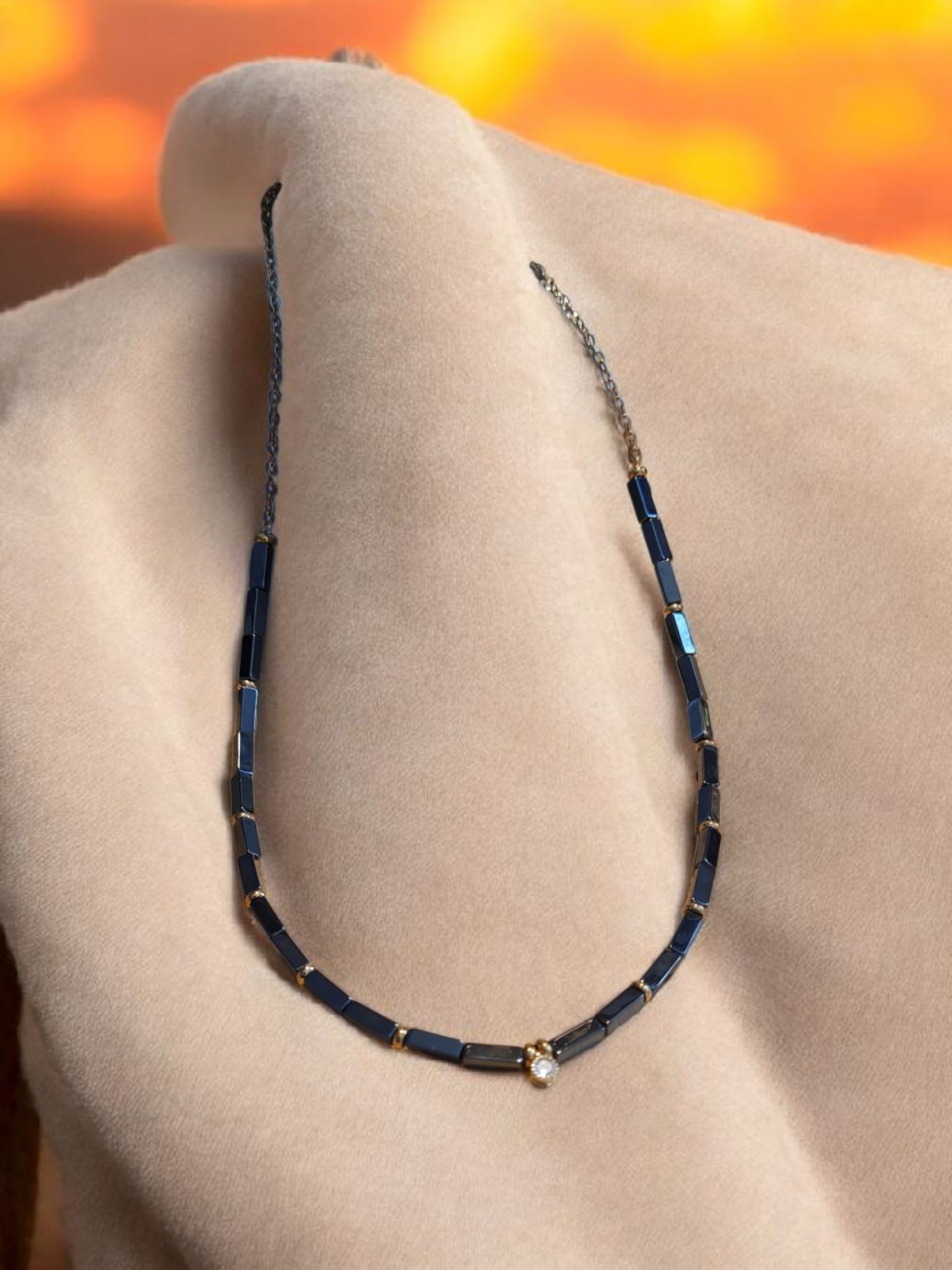 Pierres Hématite petit diamant finissant sur une chaîne plaqué or 18crt