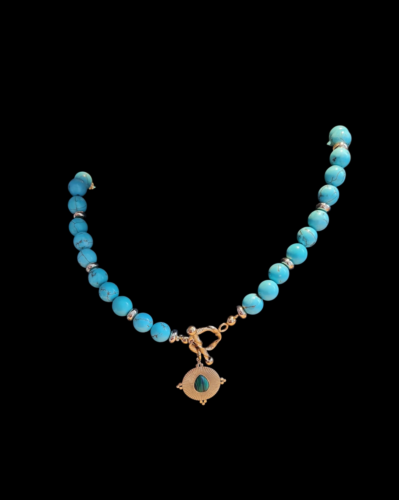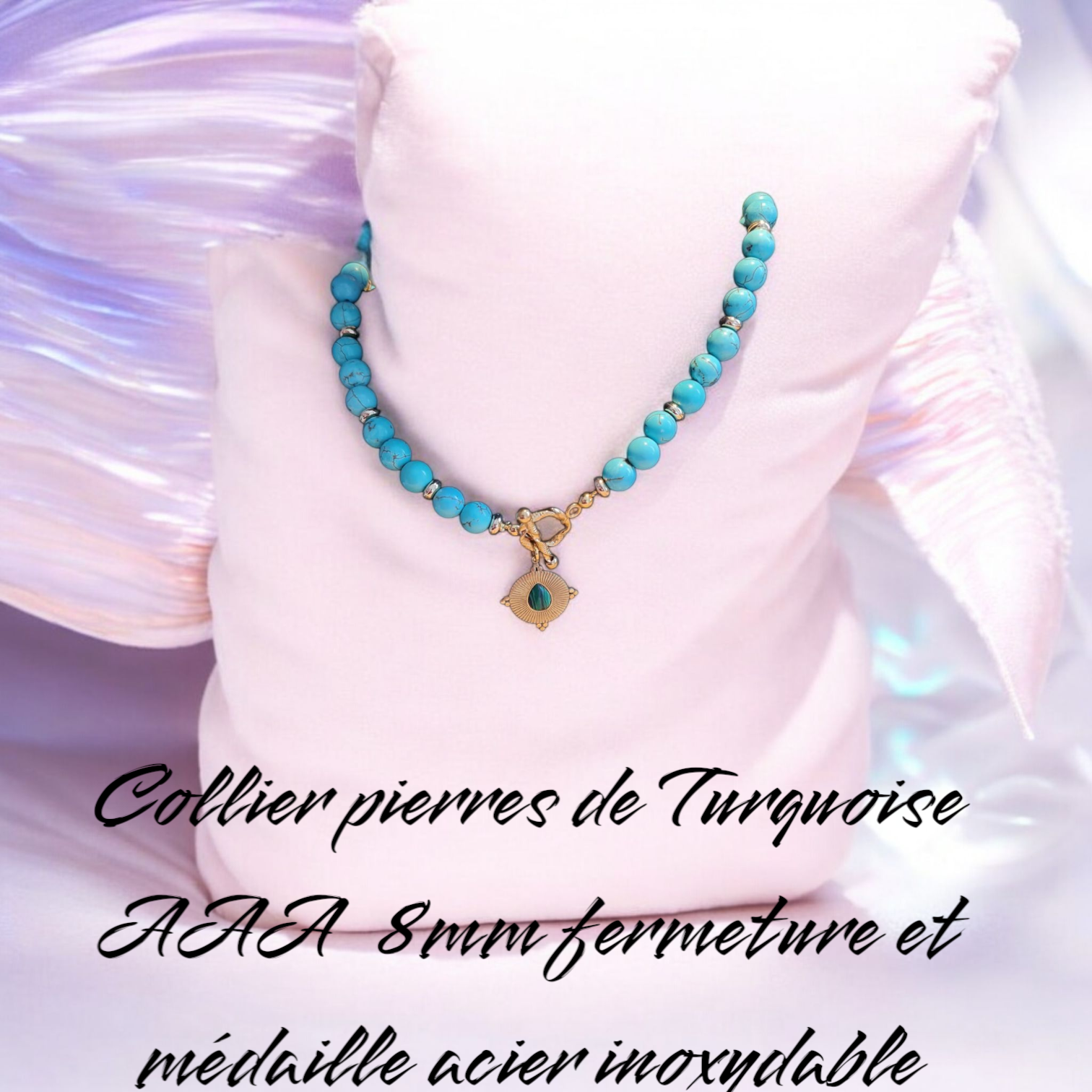 Pierre de Turquoise fermeture devant médaillon acier inoxydable