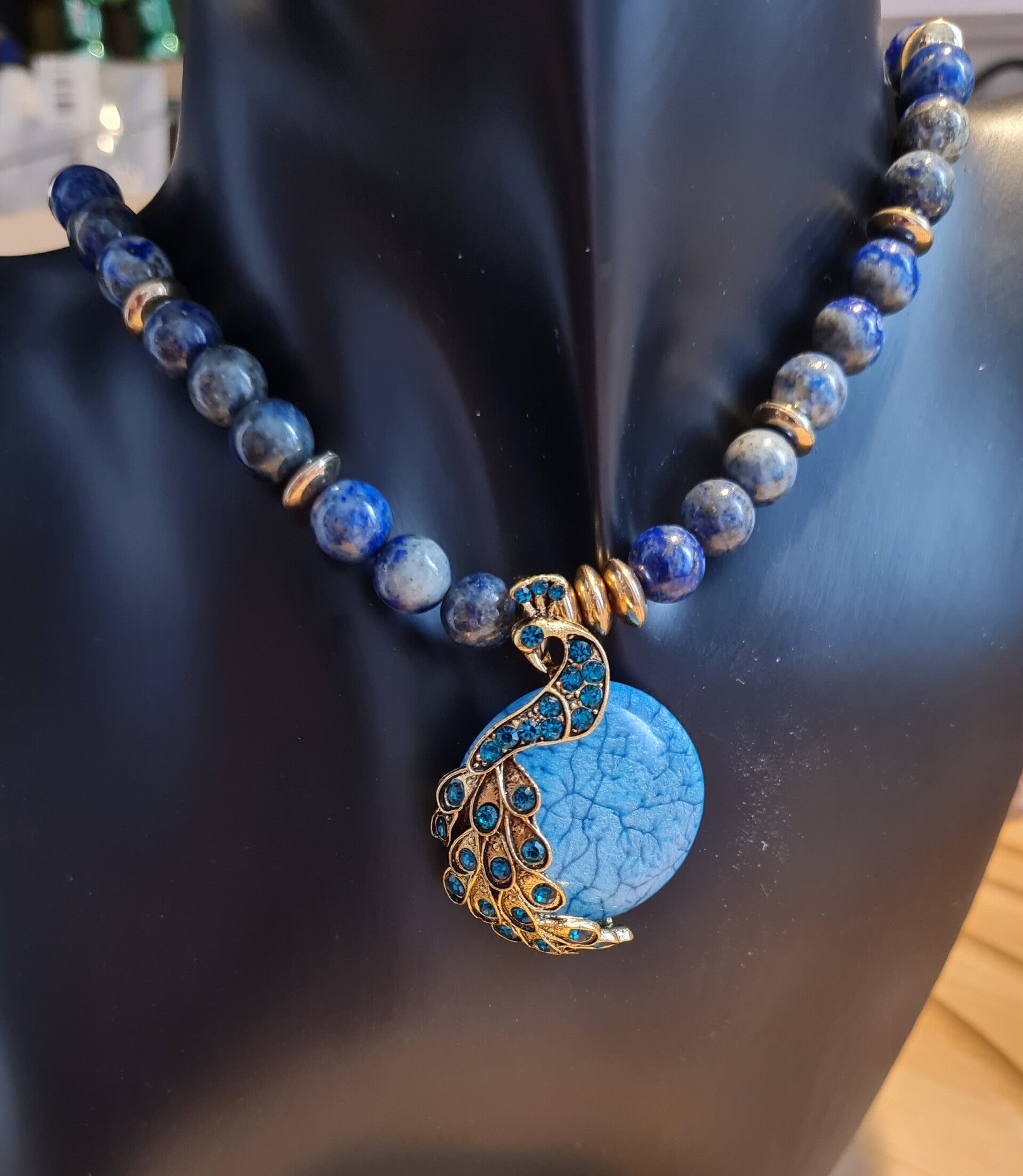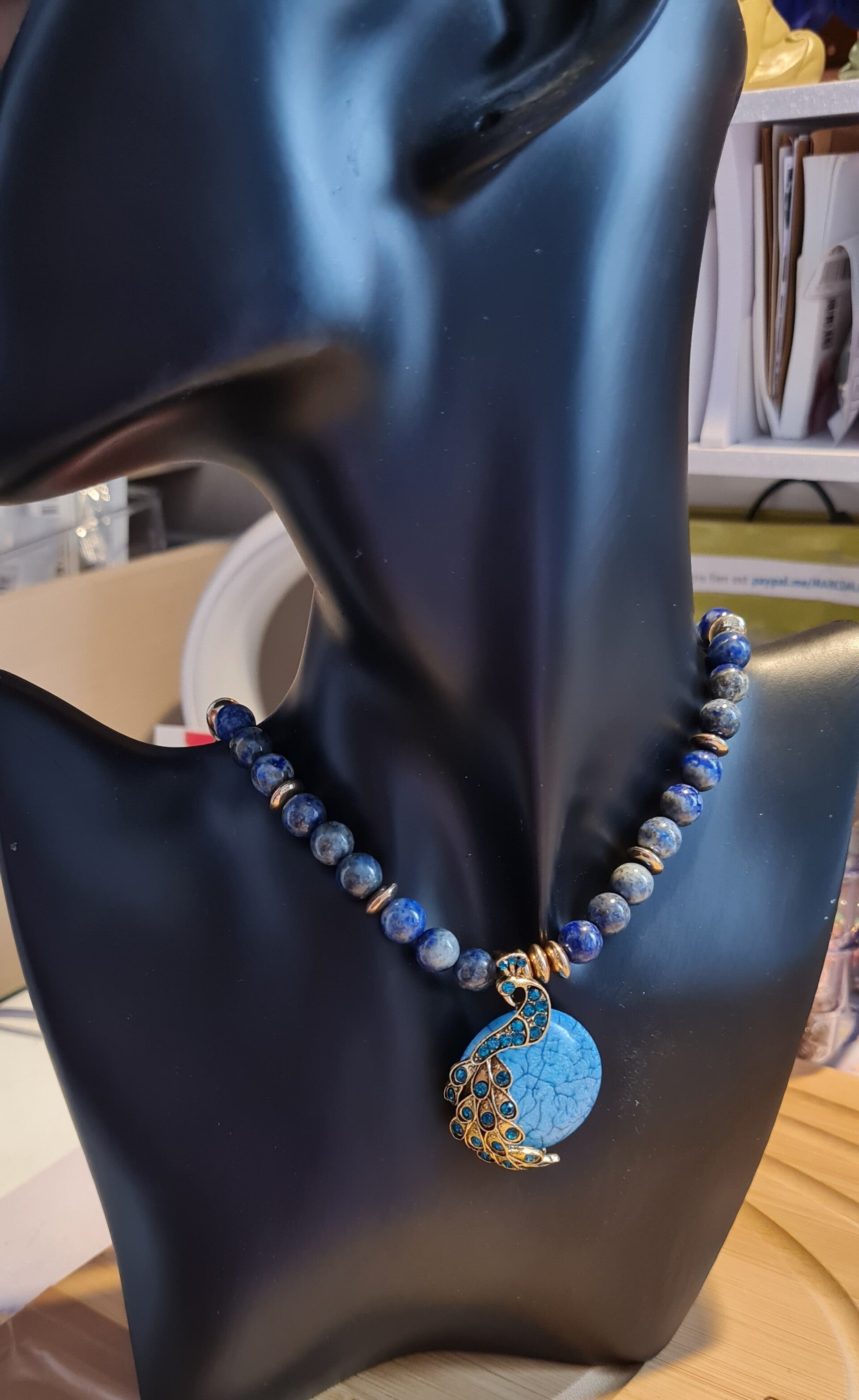 Cabochon pierre Turquoise monté en forme de paons