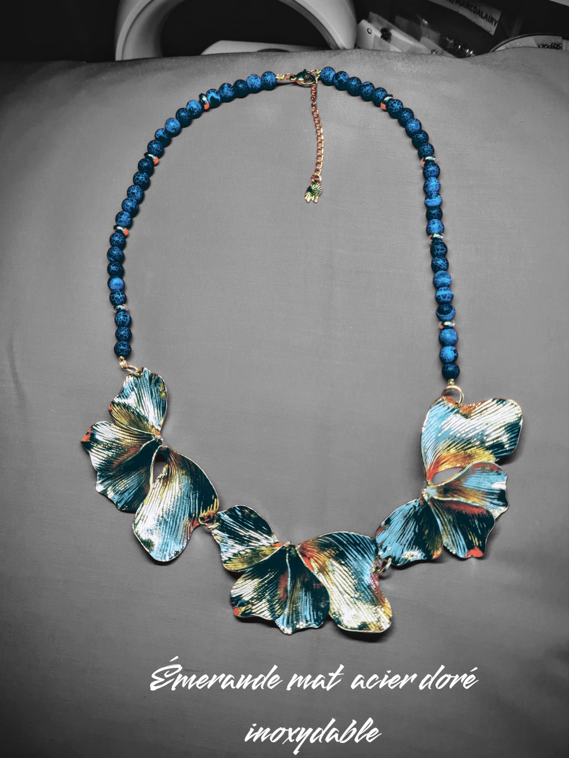 Collier 481 pierre Émeraude mat