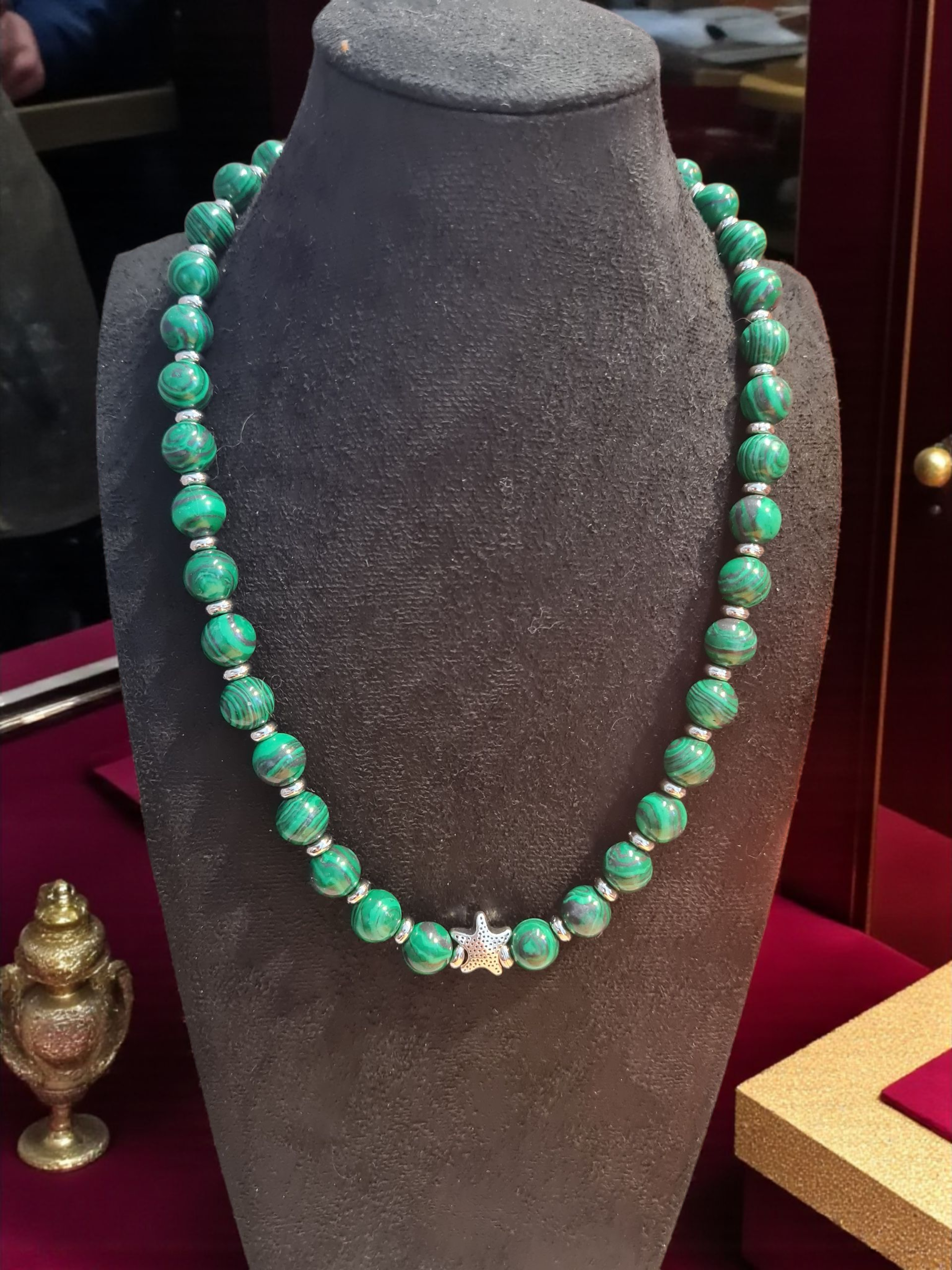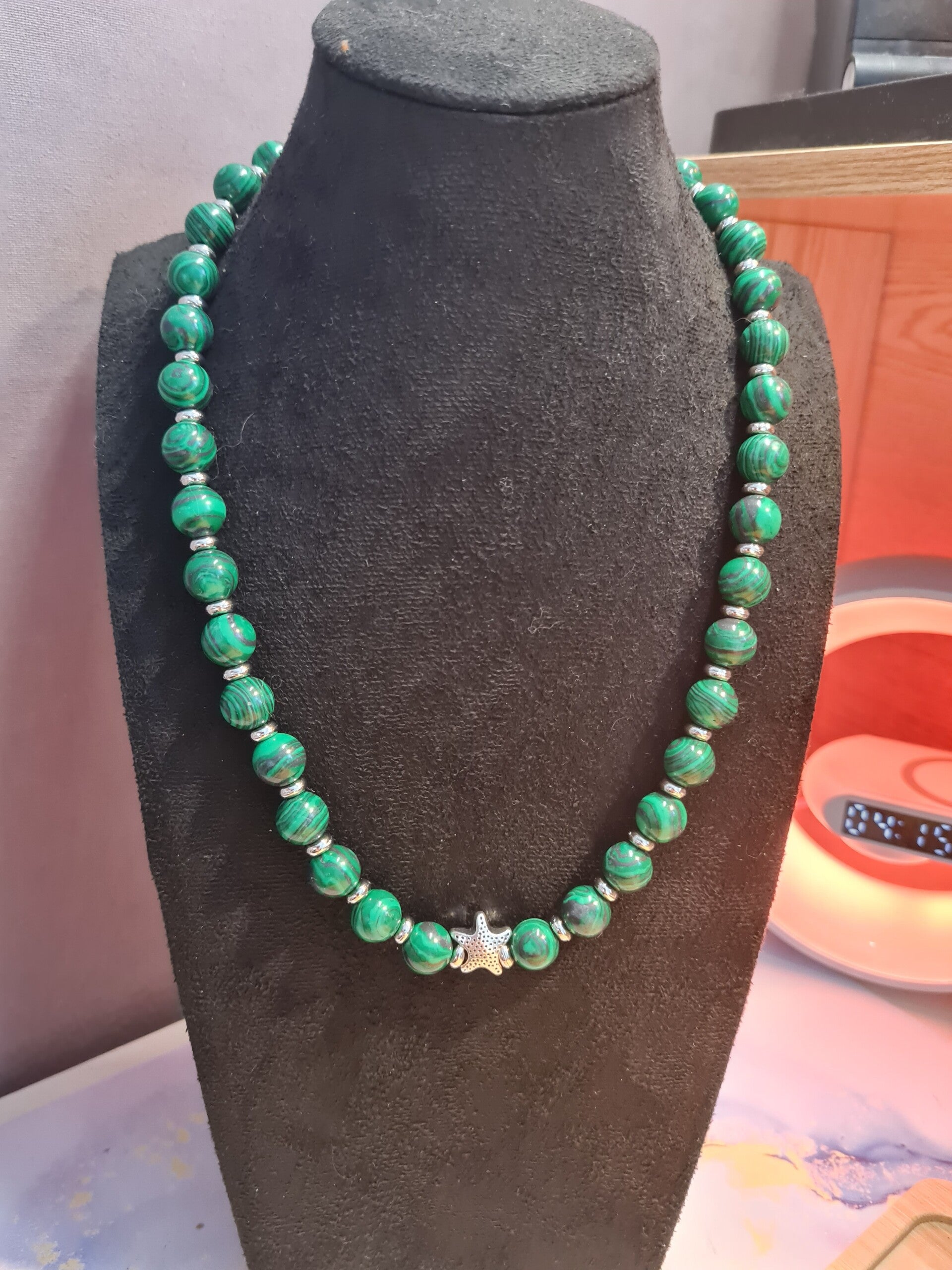 Collier 538 unisexe pierre de Malachite 10mm